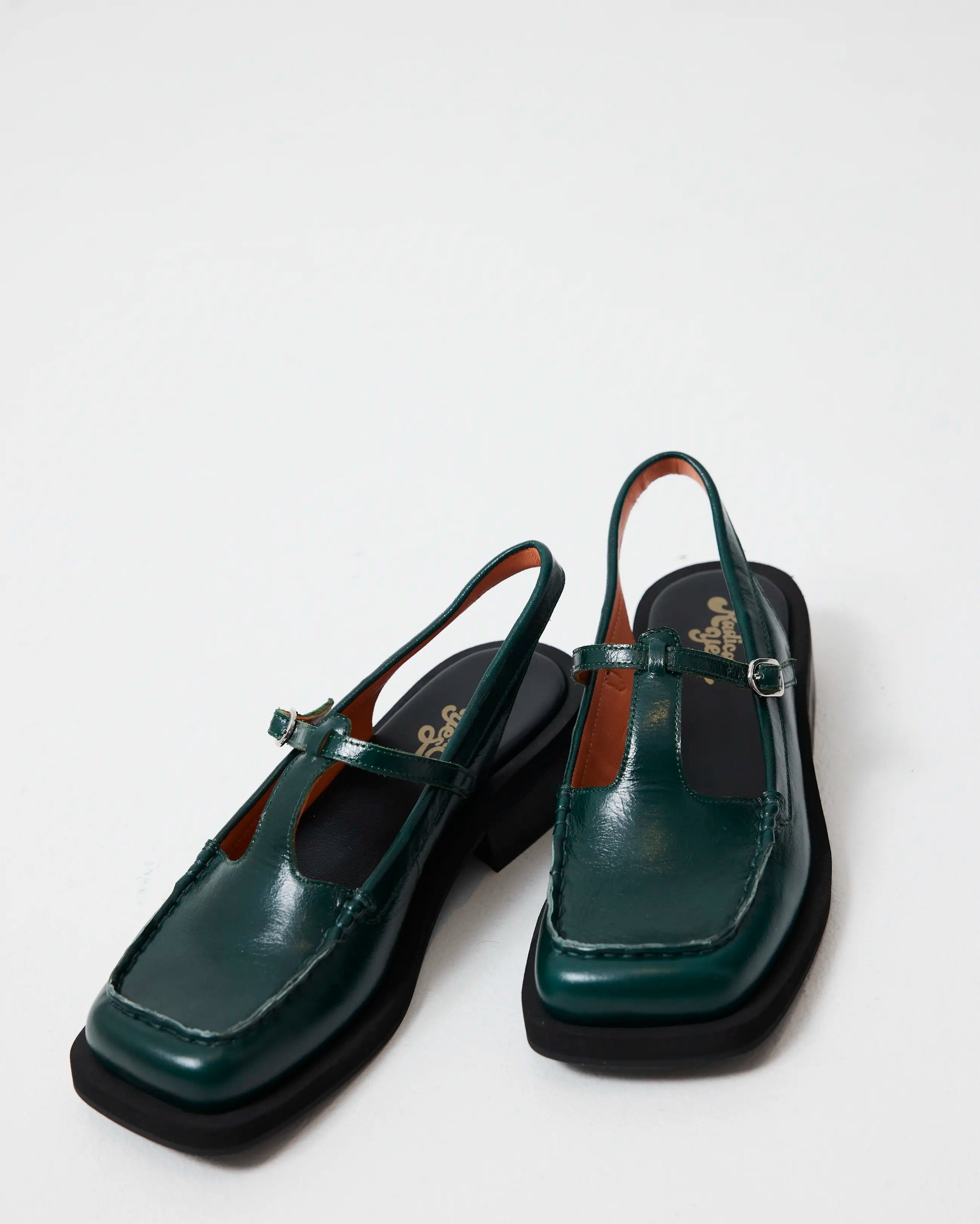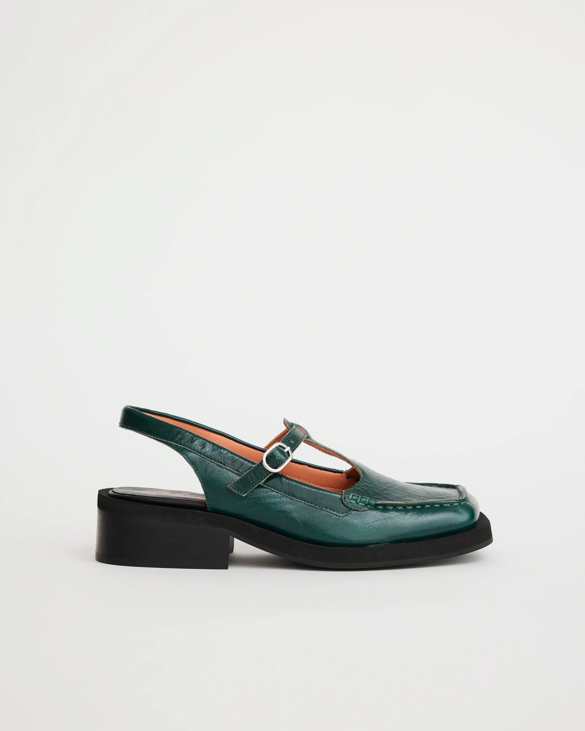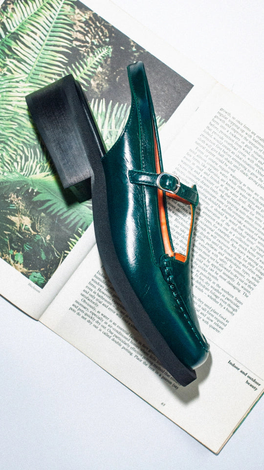 Made on the same sqaure-toe as our beloved Badu Mule and Monae Buckle Shoe, the fit is structured yet soft, featuring a low-cut, T-Bar style vamp that provides subtle coverage.