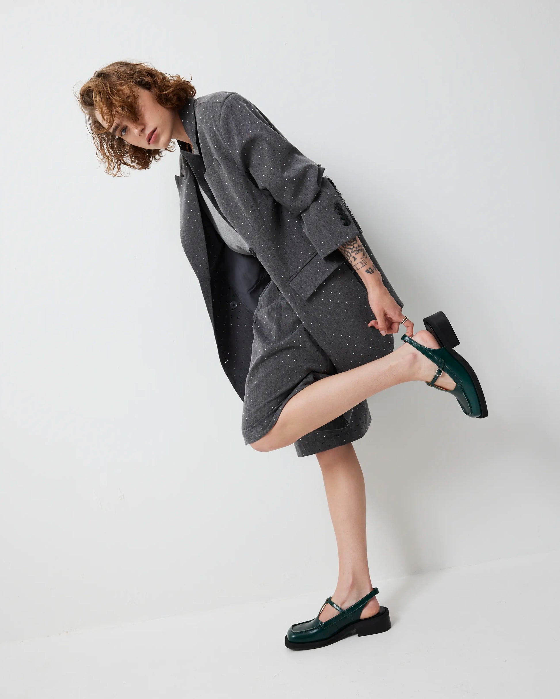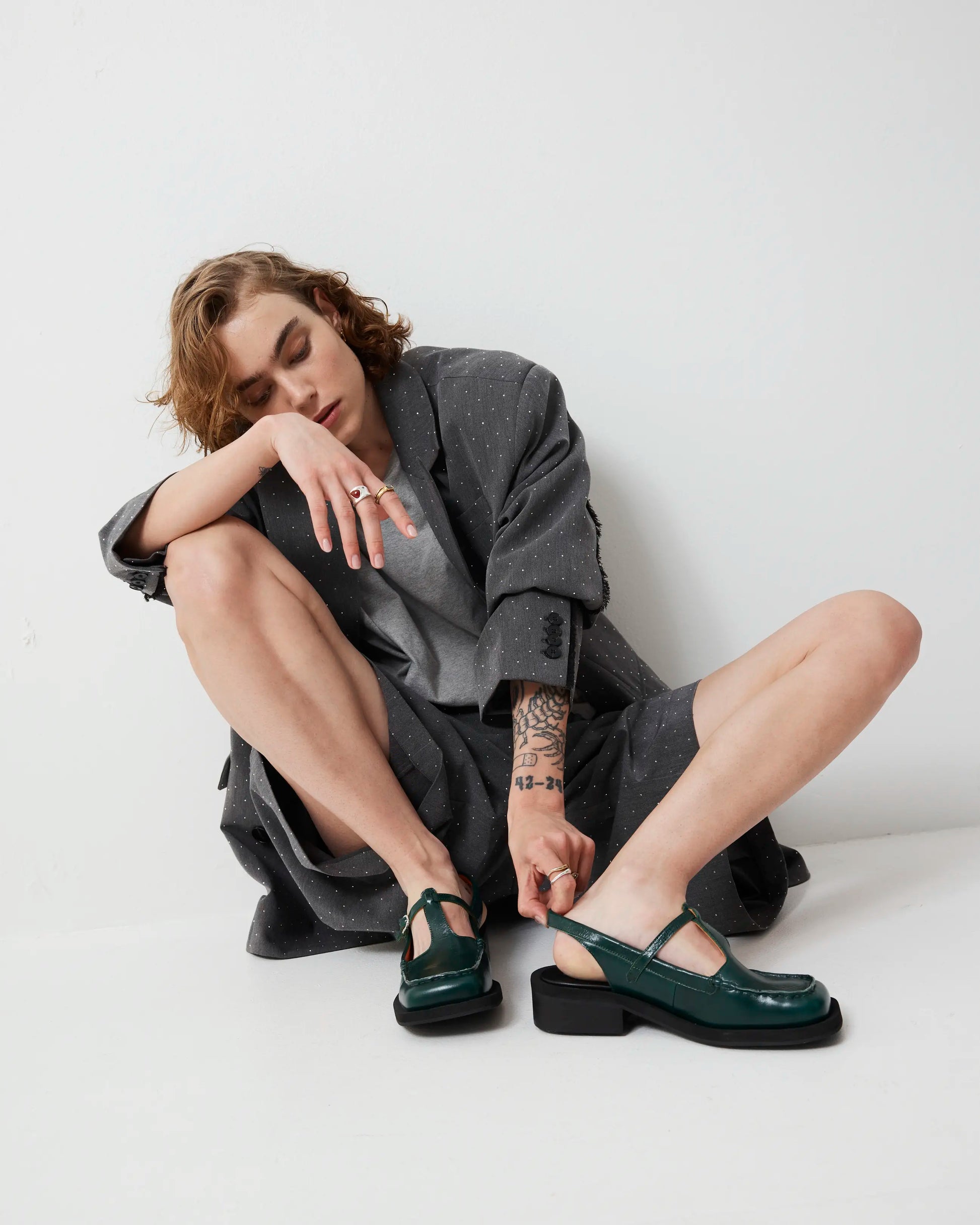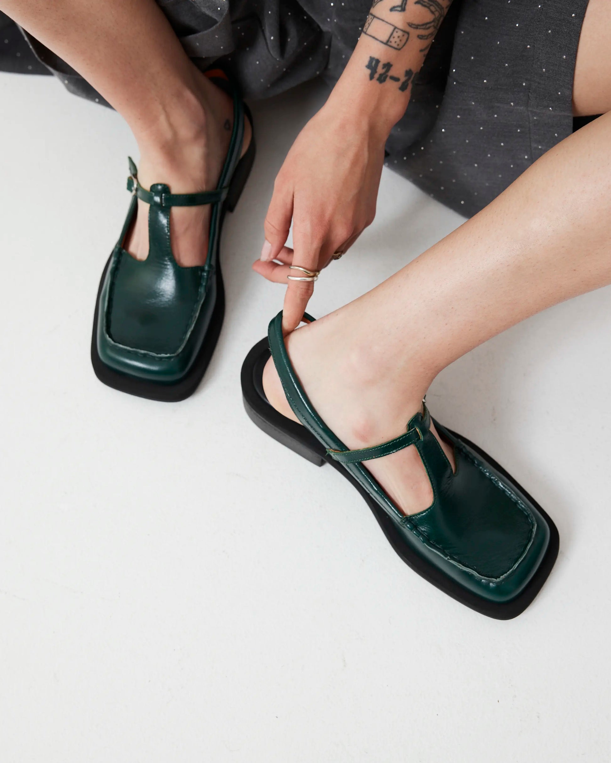 Made on the same sqaure-toe as our beloved Badu Mule and Monae Buckle Shoe, the fit is structured yet soft, featuring a low-cut, T-Bar style vamp that provides subtle coverage.