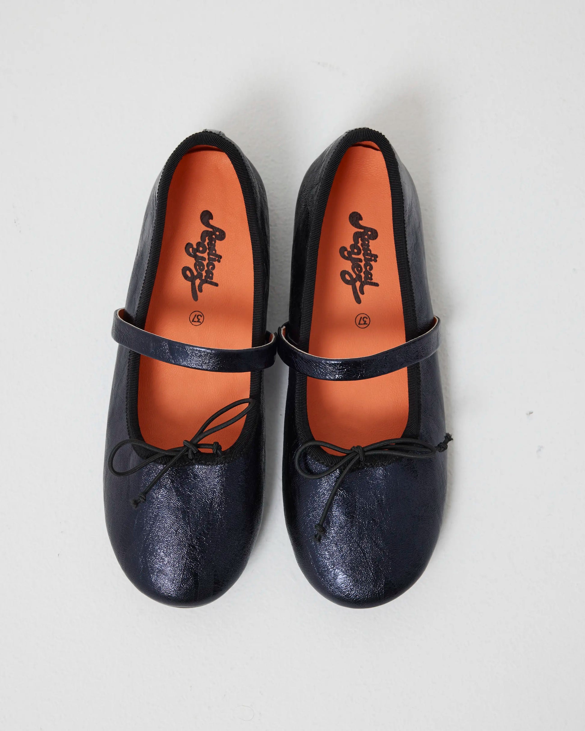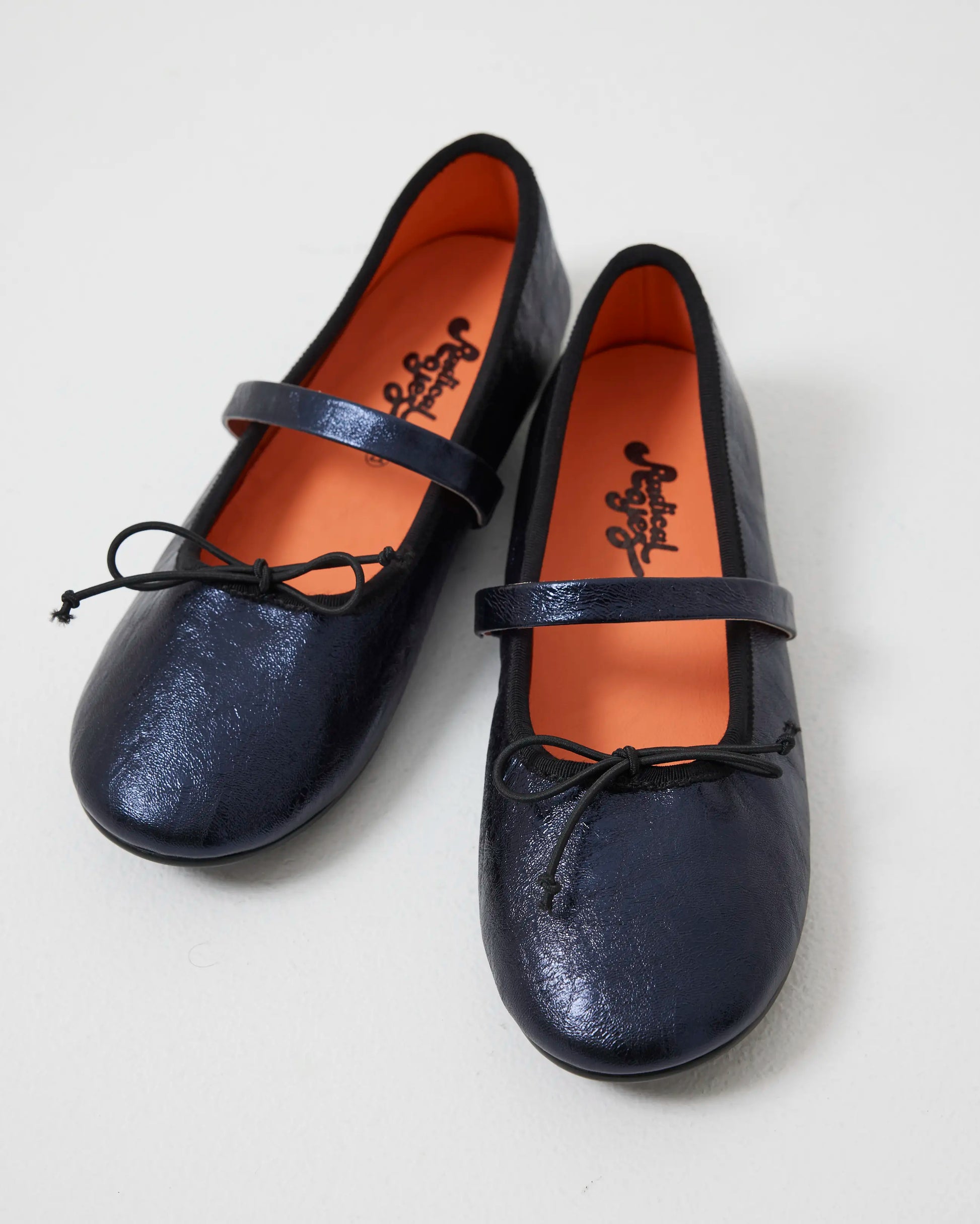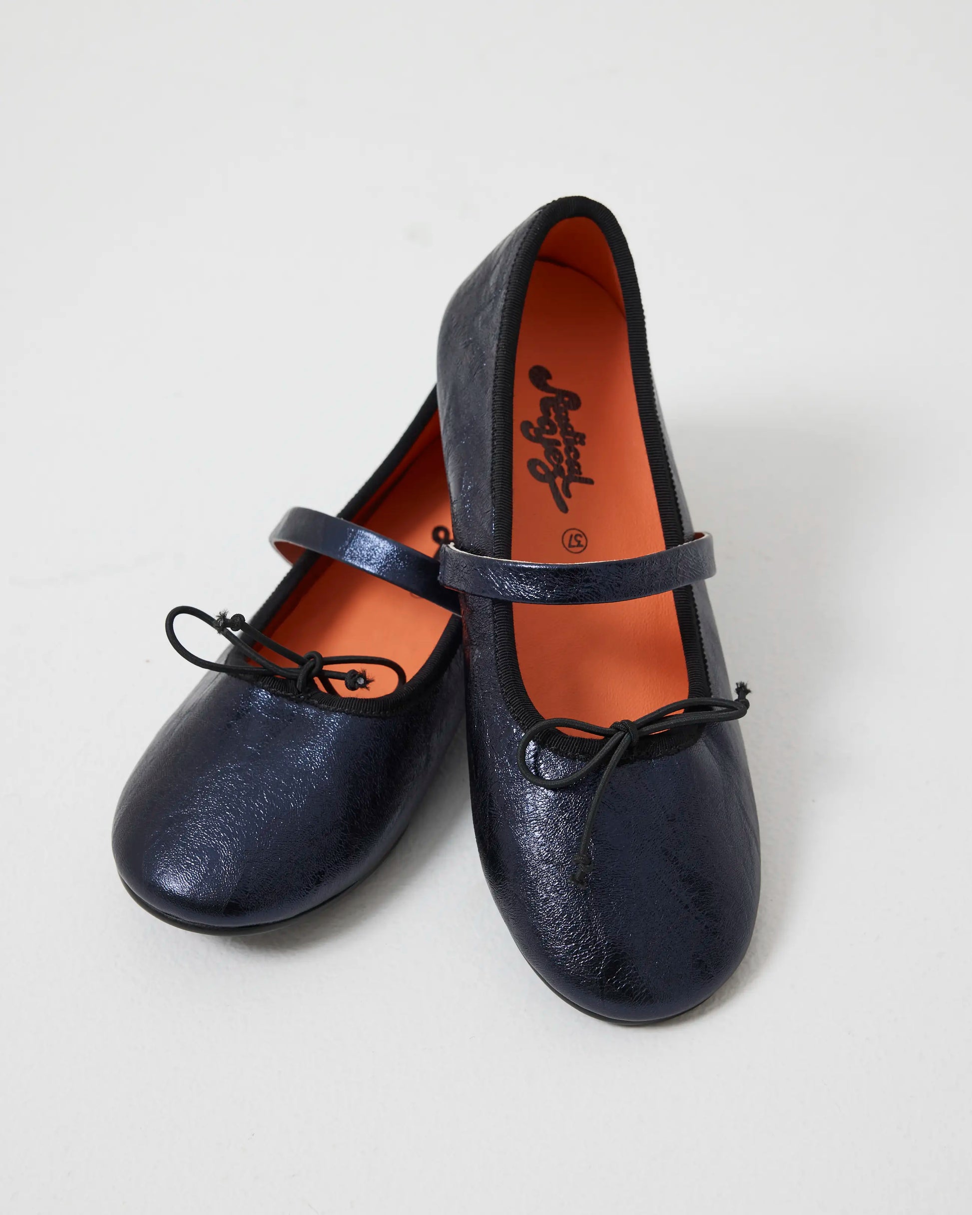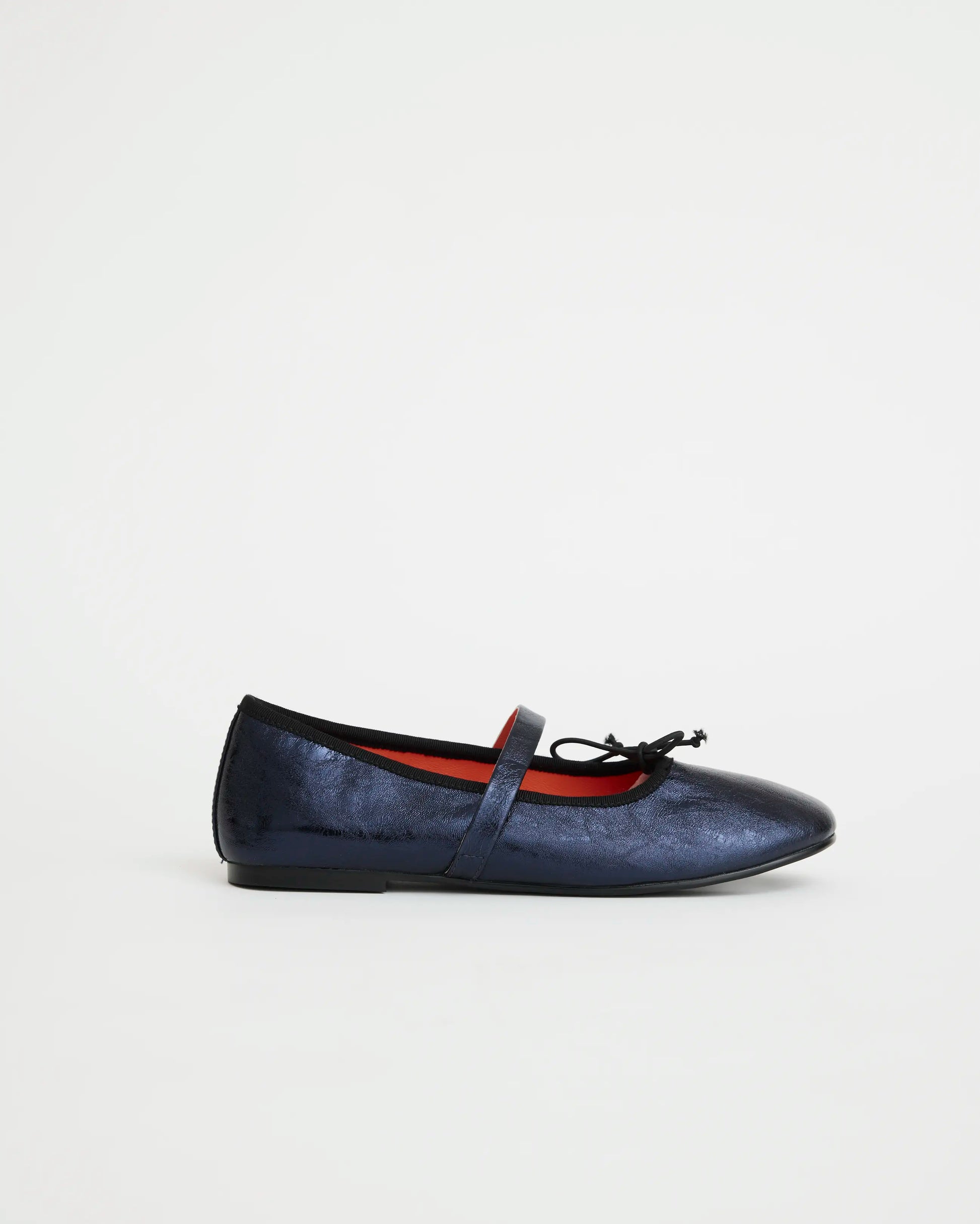 A nod to the classic ballet flat silhouette, but made Radical. Blessed 2.0 blends timeless shape with unexpected detail, now in a deep Navy Metallic leather that shimmers like midnight. We kept the classic rounded toe and low vamp for a refined silhouette, then added a single strap, a neat bow, and our removable insole for all-day ease.