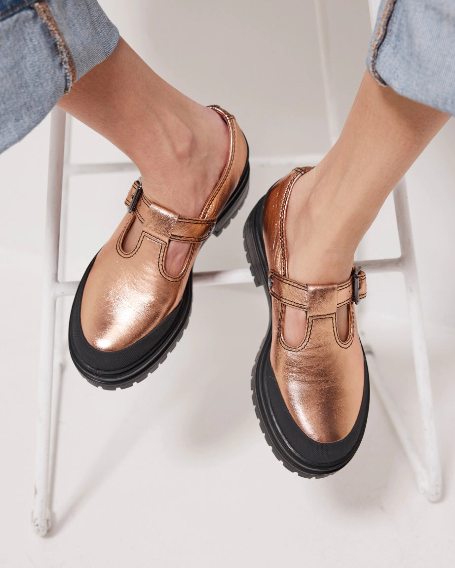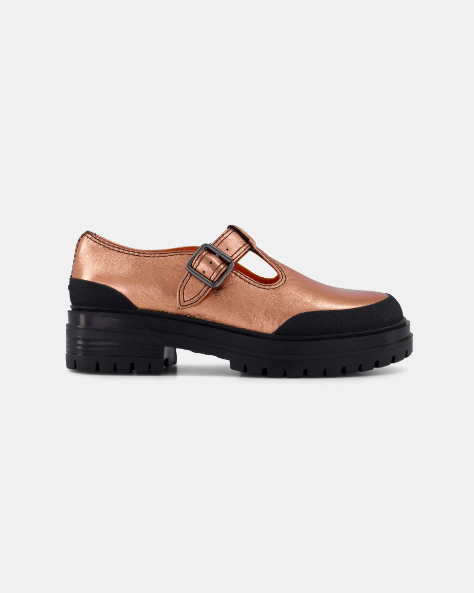 Icehouse Street T-Bar Shoe | Apricot Metallic
