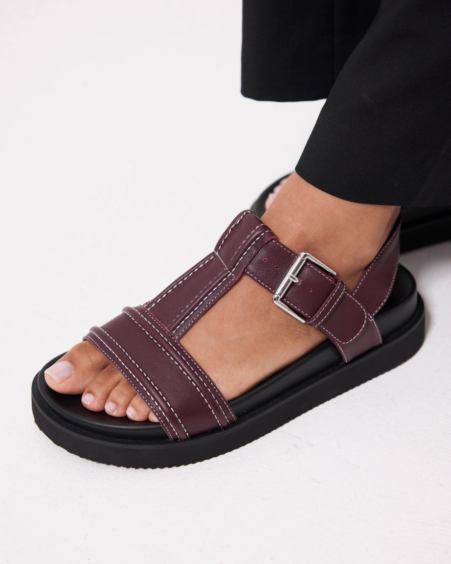 Meet Visby! Our T-bar sandal with a radical topstitch twist