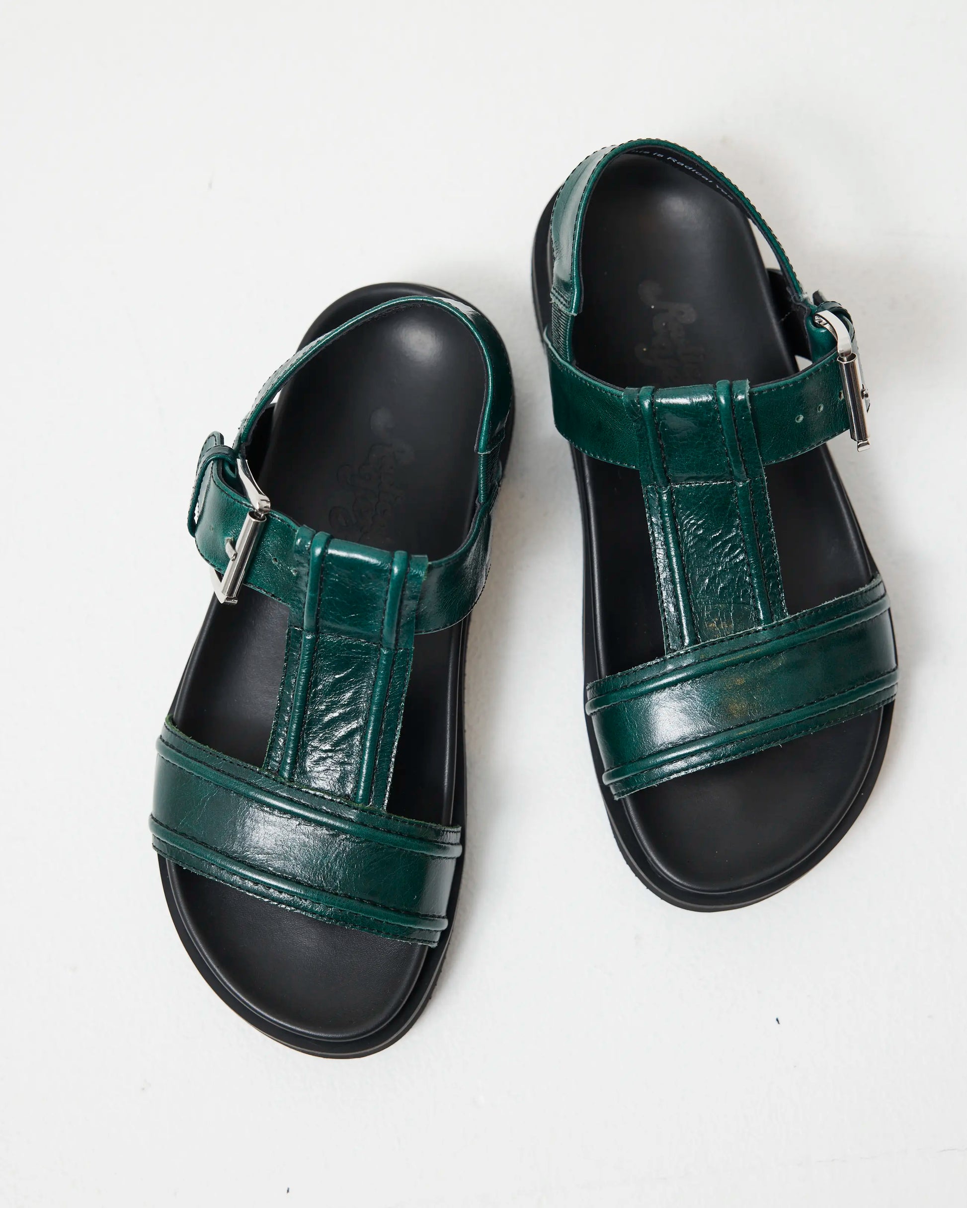 Visby T-Bar Sandal | Jade Green with Black Topstitch