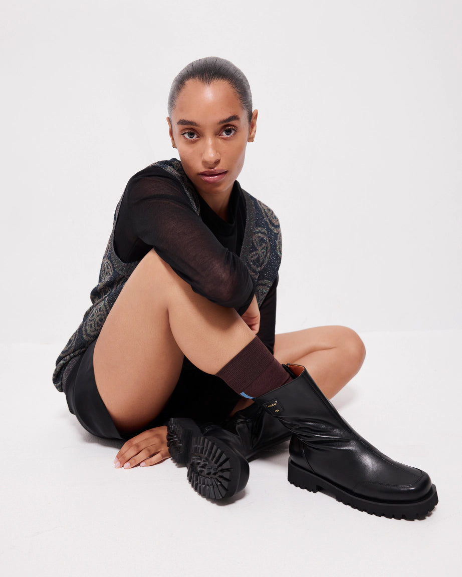 Midi heights feel new again with the Luminous Midi Boot. Bucketed in silhouette, with a snub square toe which gives strong sharp vibes, while the cleated outsole provides a solid active feeling under foot. The perfect hybrid all week long boot, make a compelling case for longevity given the practical warmth of over-the-ankle coverage.