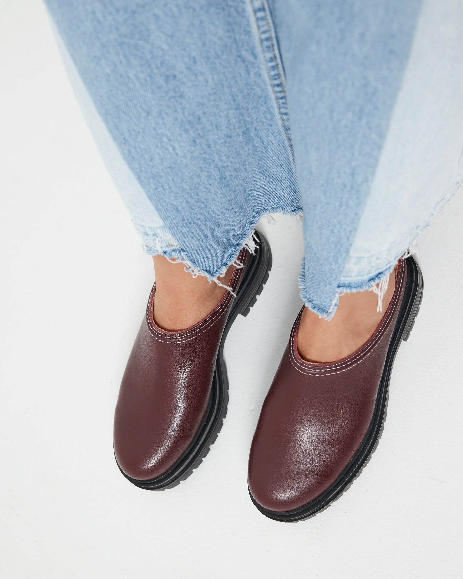 We know that you love a clog as much as we do here at Radical Yes, so our Delphine Clog is back in a fresh colourway for the warmer months ahead! The sleek Cherry leather upper is set upon our now famous LUG sole. This hybrid flat, wear-everywhere clog is made for all your Spring happenings. Our favourite part? The contrasting cream topstitch brings a subtle yet radical pop of colour to your day.