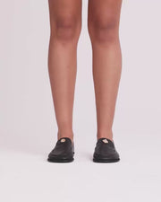 Hands-free, slip-on excellence. The Meriem Loafer is inspired by luxurious and otherworldly hotel lounging. It's no secret that we love the irregular, so what better way to pay homage to this than adding some intentionally mismatched gold decoration to a classic leather loafer.