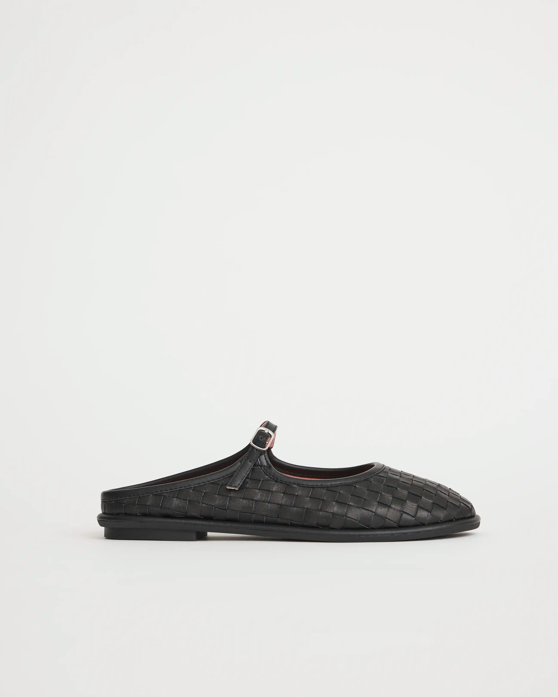 Introducing Pixie Woven Mule! Low-profile, lightweight, and effortlessly chic, Pixie is your go-to summer mule. Its dainty buckle strap and rounded toe deliver a comfortable yet polished fit, while the flexible rubber outsole keeps you moving with ease. Crafted in black woven leather for that relaxed, summery feel and lined in soft sheepskin suede, Pixie wraps your foot in gentle comfort. Subtle elegance in every step, she’s is perfect for summer lunches, wine-filled afternoons, or anytime you want a polished-but-relaxed vibe.