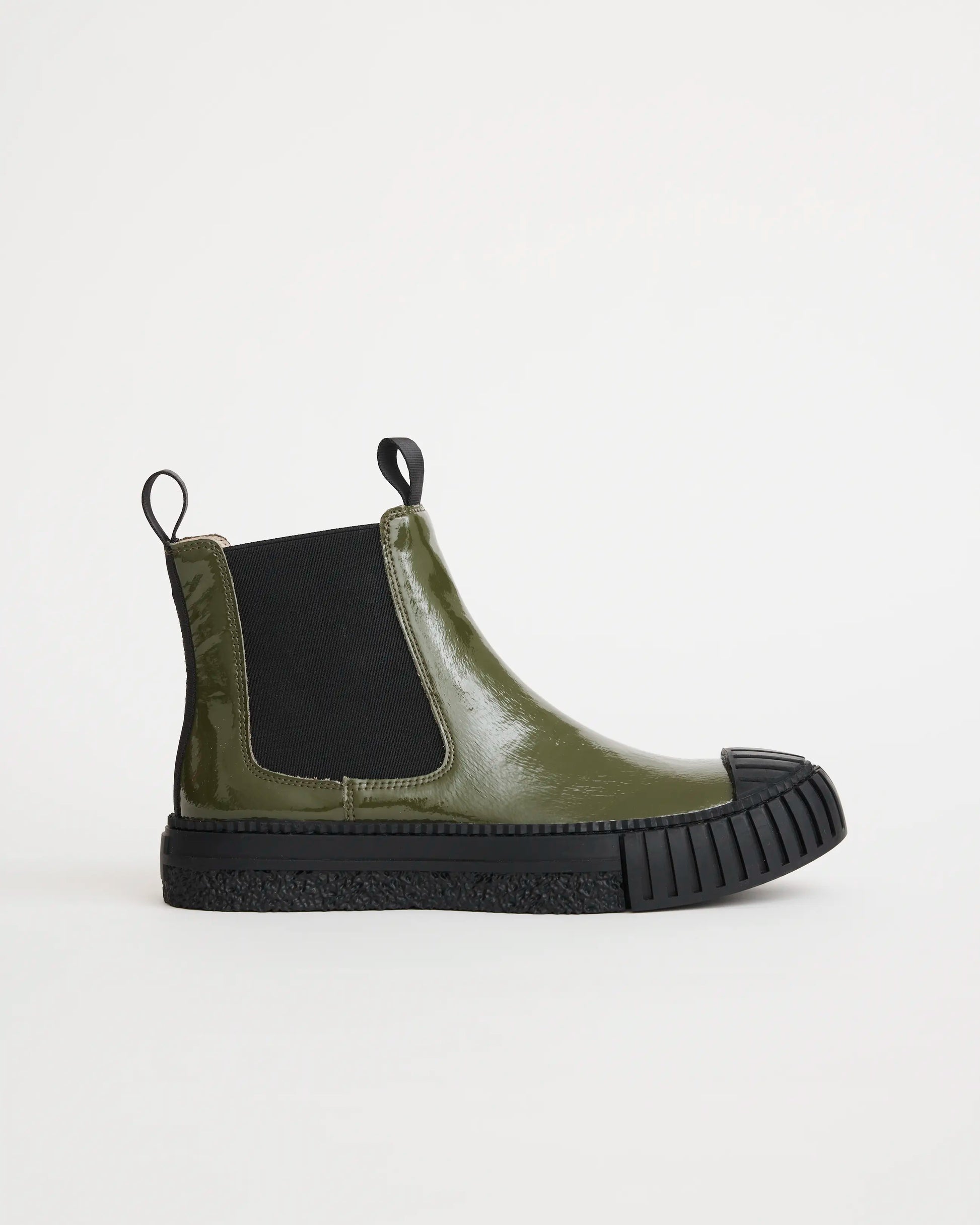 Meet Barbar, the run-around Chelsea boot made Radical. Crafted from glossy moss green leather for a versatile yet conversational addition to your wardrobe, these boots offer pull-on ease and winter-ready warmth, making them the easy-on, easy-off signature style you’ve loved since 2021.
