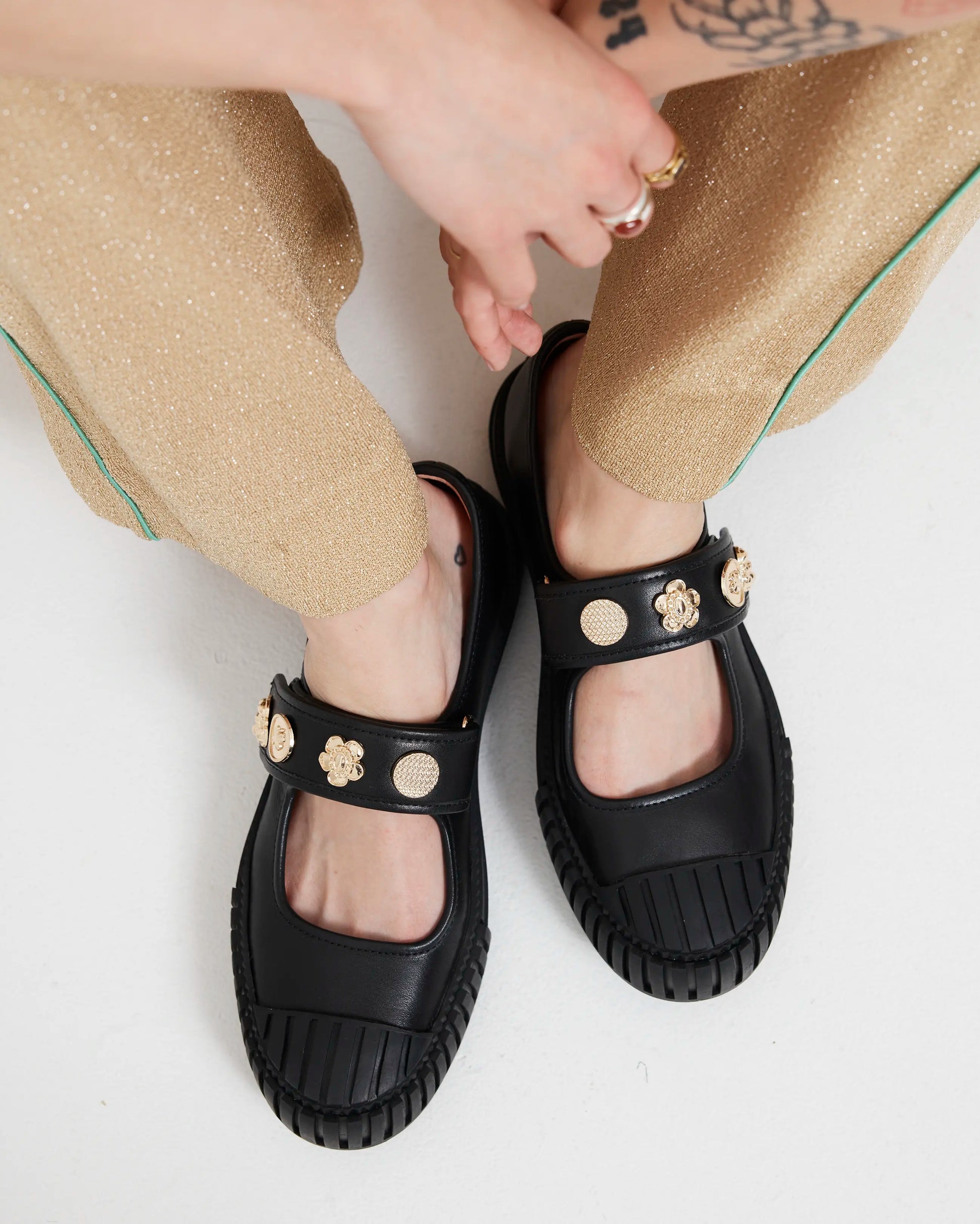 Grace Velcro Leather Mary Jane | Black Deco Amazingness