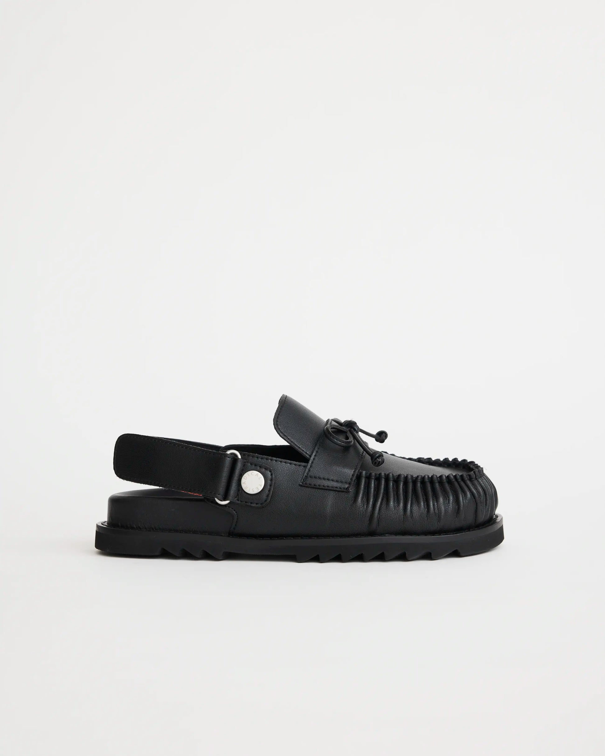 The Left Bank Loafer is a modern, more formal iteration of our beloved "Adventure Awaits" heritage. Riffing on a timeless moccasin vibe, this silhouette is reimagined with a "clog-like" sturdy energy, acting as a versatile anchor for your creative uniform. Built on our most popular last, the design features a distinctive ruched apron toe finished with a gorgeous tonal leather bow for a soft, feminine touch. Built for high-rotation ease, the variegated stacked outsole is designed with a moulded edge that cups the foot, offering incredible support and ease without sacrificing its artisanal aesthetic. Whether styled with oversized tailoring or vintage denim, Left Bank provides a "La Garçon" inspired anchor for your daily creative rituals.