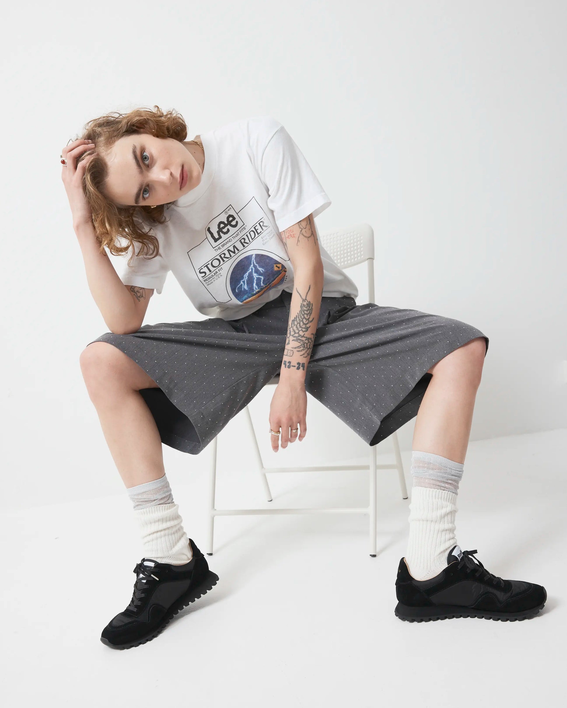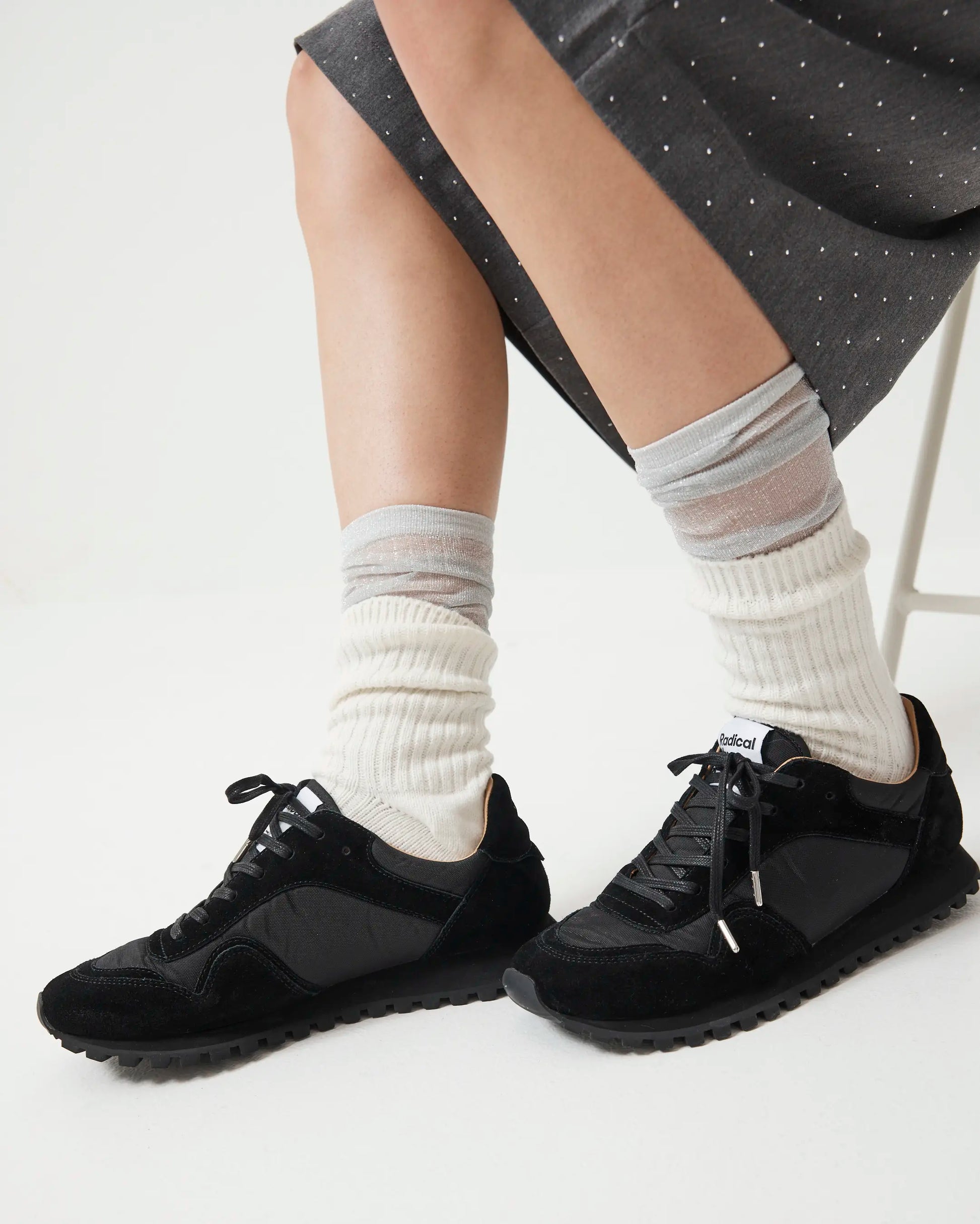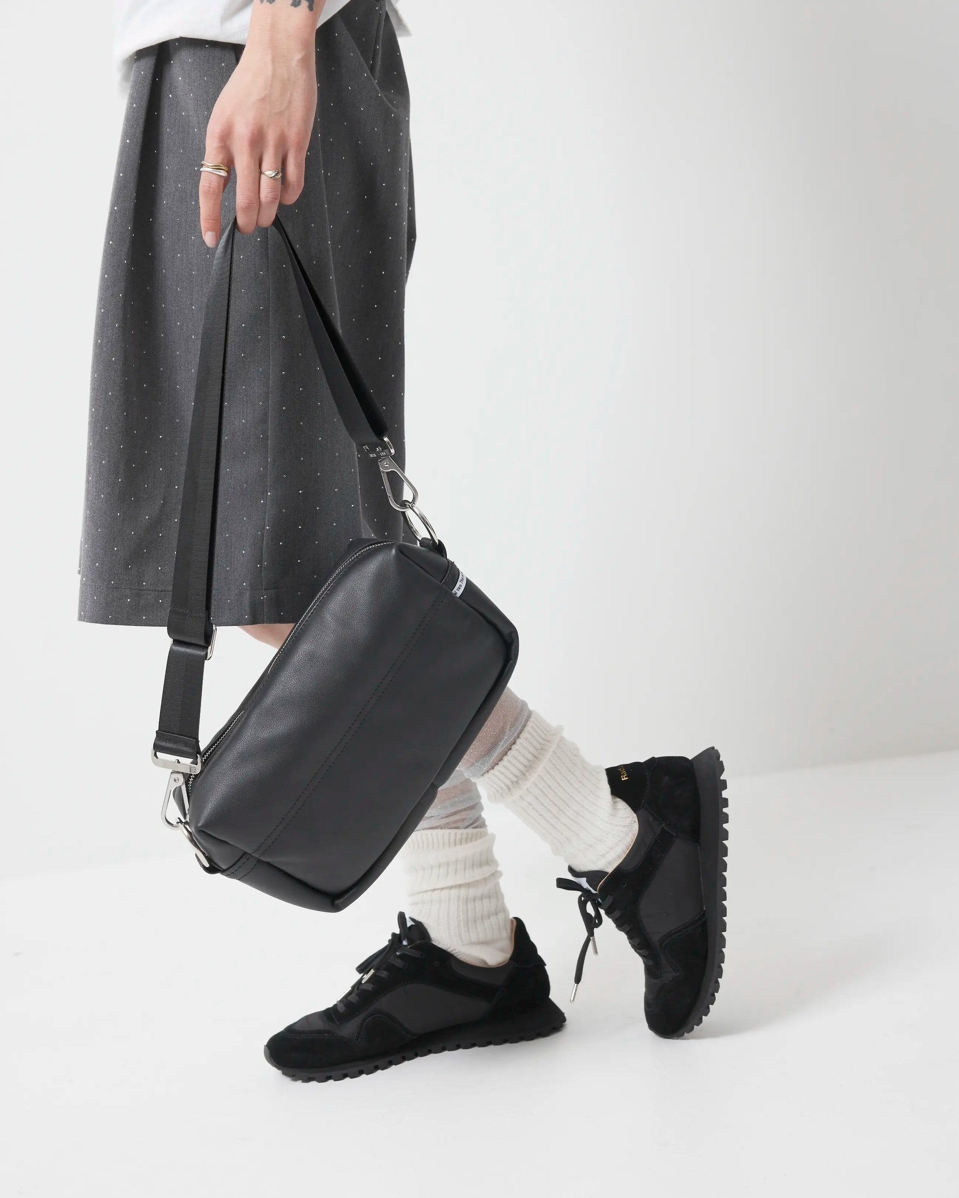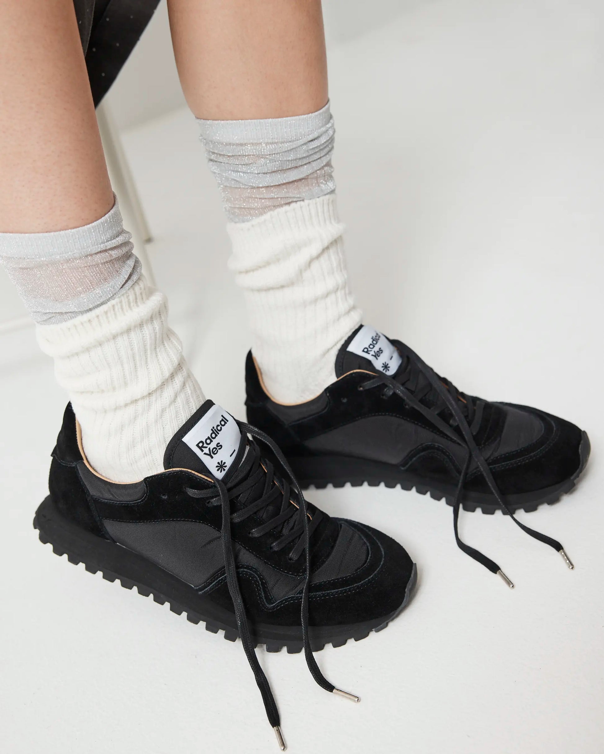 Meet Moon Street, a 'wear-everywhere' sneaker silhouette, designed to inspire joy, positivity, and a new point of view. A nod towards retro styling, Moon Street is lightweight and delightfully scrunchable. This season, we've created an all-black iteration with sharp styling in mind. Crafted in nylon and suede for rich texture and all-day comfort.